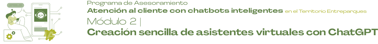 Inicio 5 Programa de Asesoramiento 8 5 Módulo 2: Creación sencilla de asistentes virtuales con ChatGPT Volver atrás Módulo 2 Recursos del Módulo Contenido teórico Acceder Podcast Acceder Ejercicio práctico Acceder Lecturas complementarias PEl futuro de los chatbots en la atención al cliente: ¿Están reemplazando a los humanos? P¿Cómo crear un chatbot con IA e integrarlo en WhatsApp? PLa guía definitiva de los chatbots PNL en 2025 Vídeos complementarios P¡Las Nuevas Funciones de ChatGPT Son una LOCURA! PConversaciones con Inteligencia Artificial – ChatBots PCómo CREAR TU PROPIO Chatbot con ChatGPT desde cero
